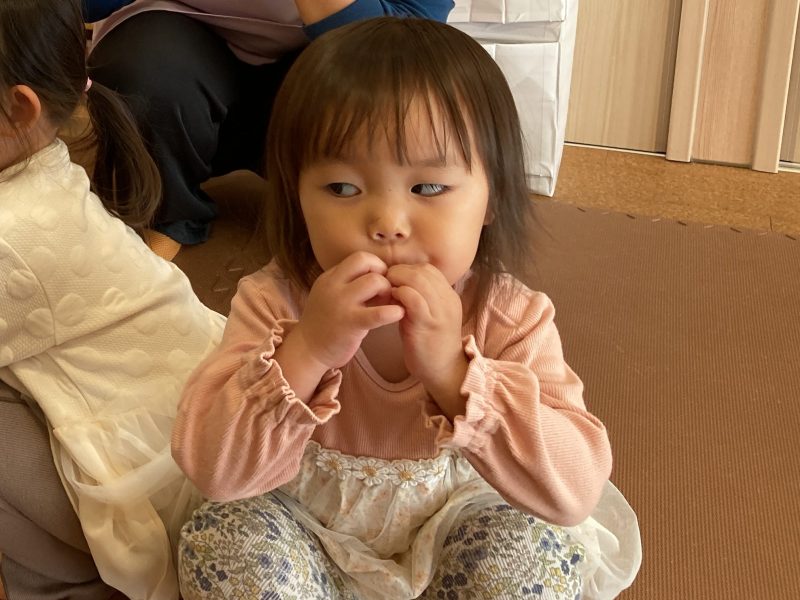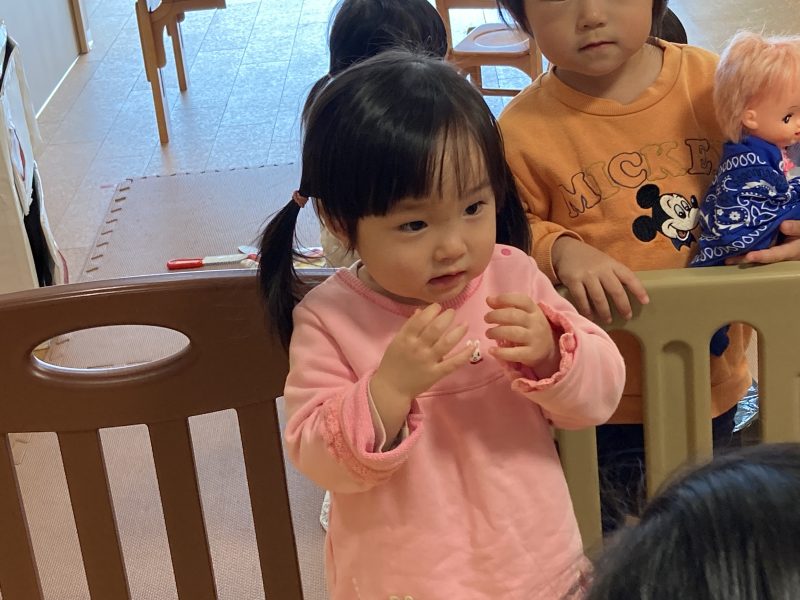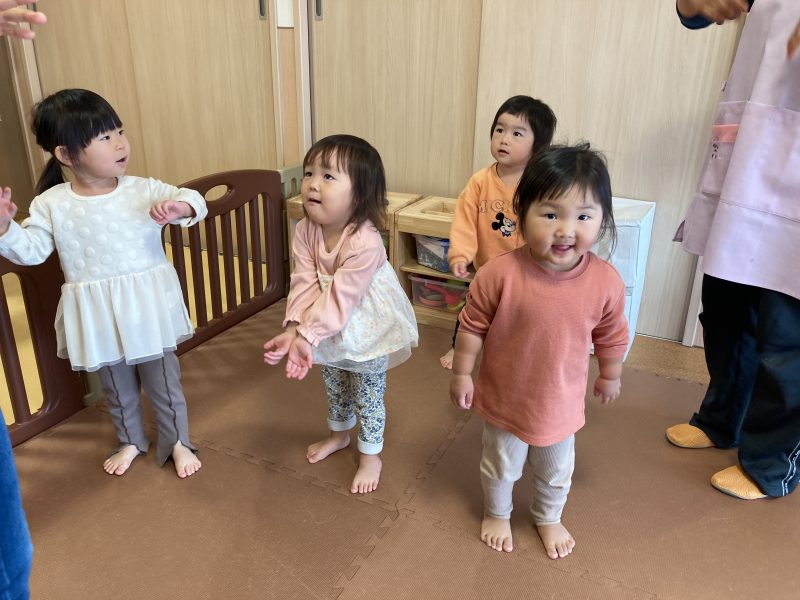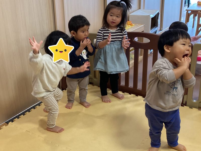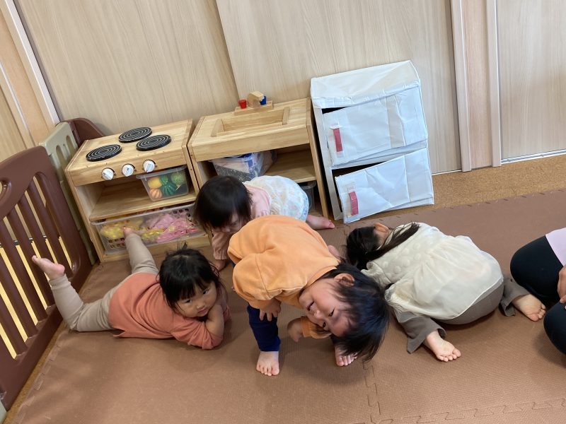 その後は、子どもたちの大好きな『むっくりくまさん』という集団遊びをしました♪