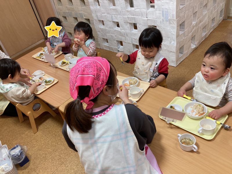 食べている途中で電気が付き、子どもたちから「わぁ~♡」と歓声があがっていました。