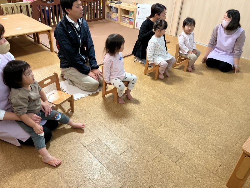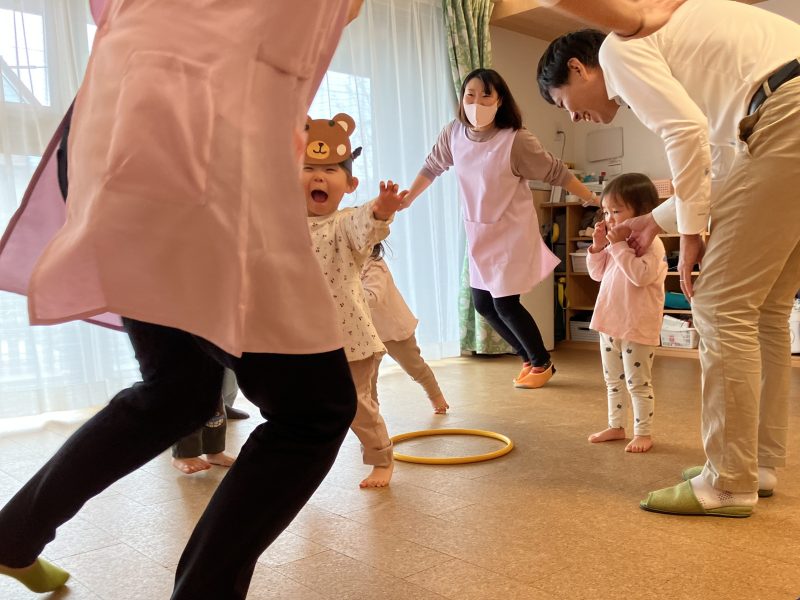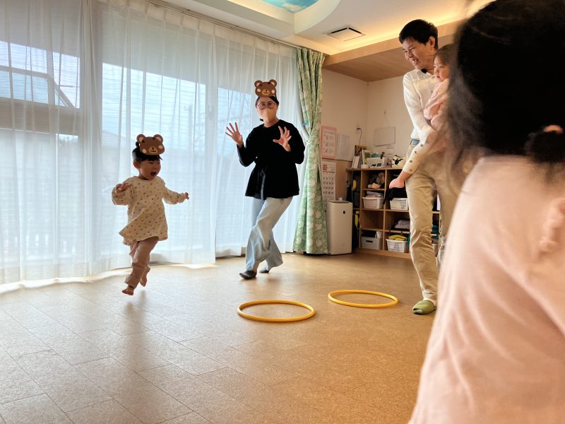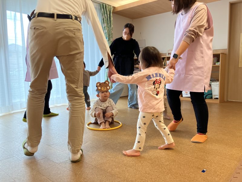 その後は、子どもたちの大好きな『むっくりくまさん』という集団遊びをしました♪