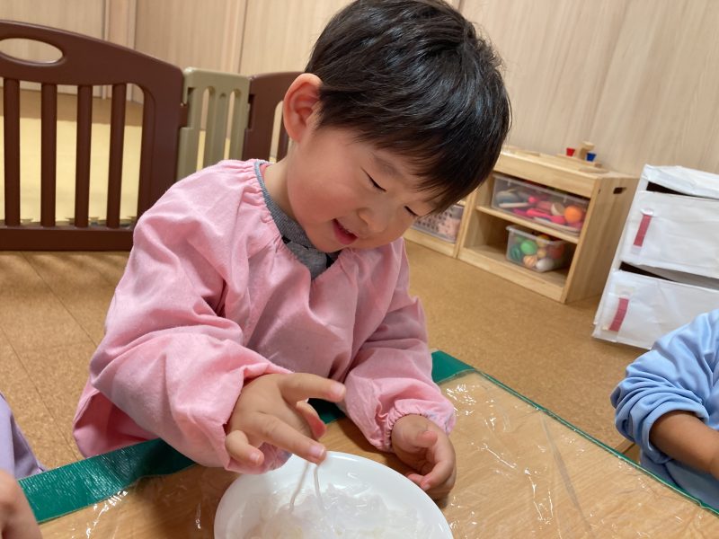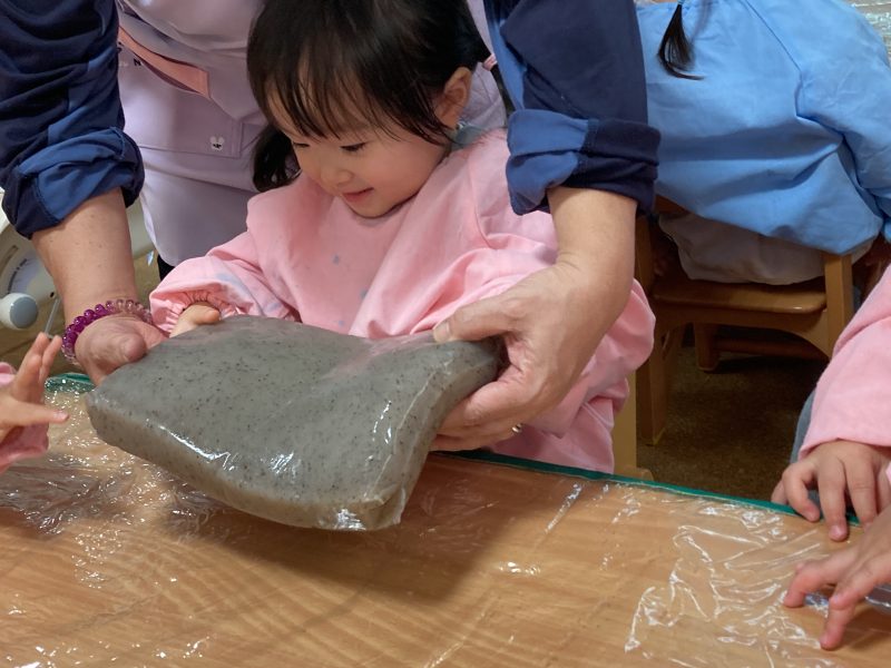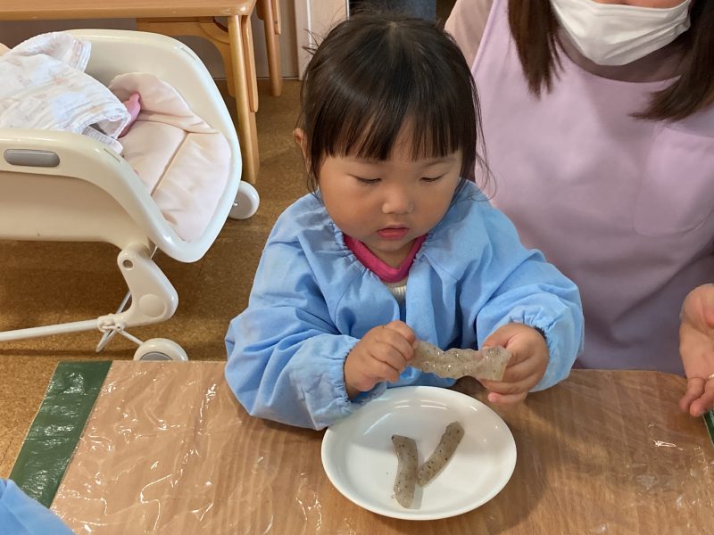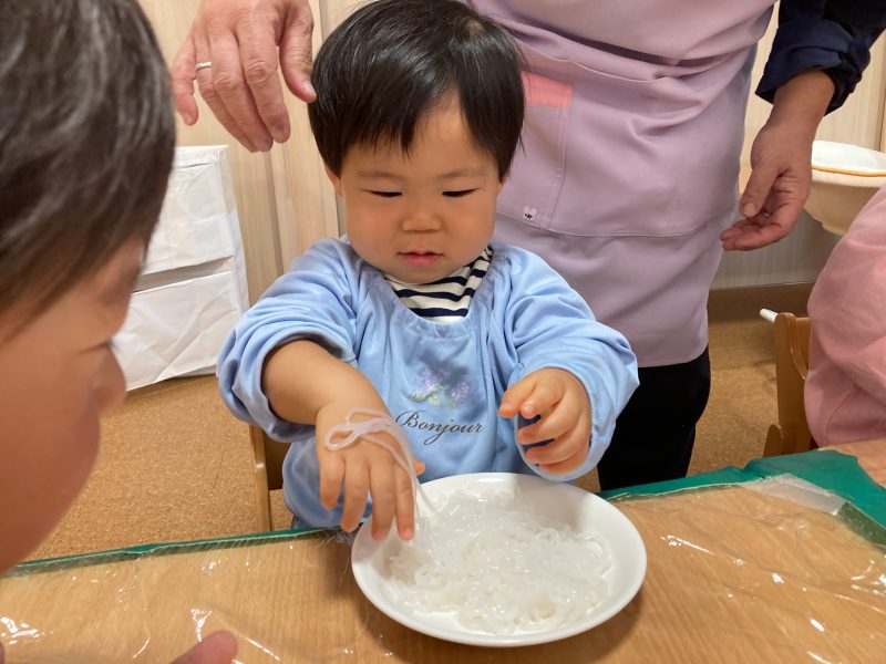 コンニャクと白滝の感触を楽しんだ子どもたちです♪