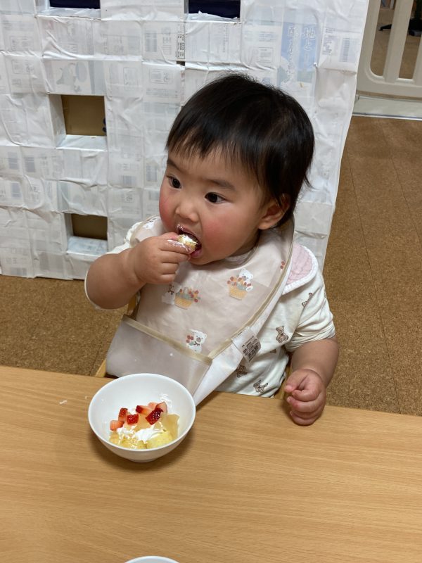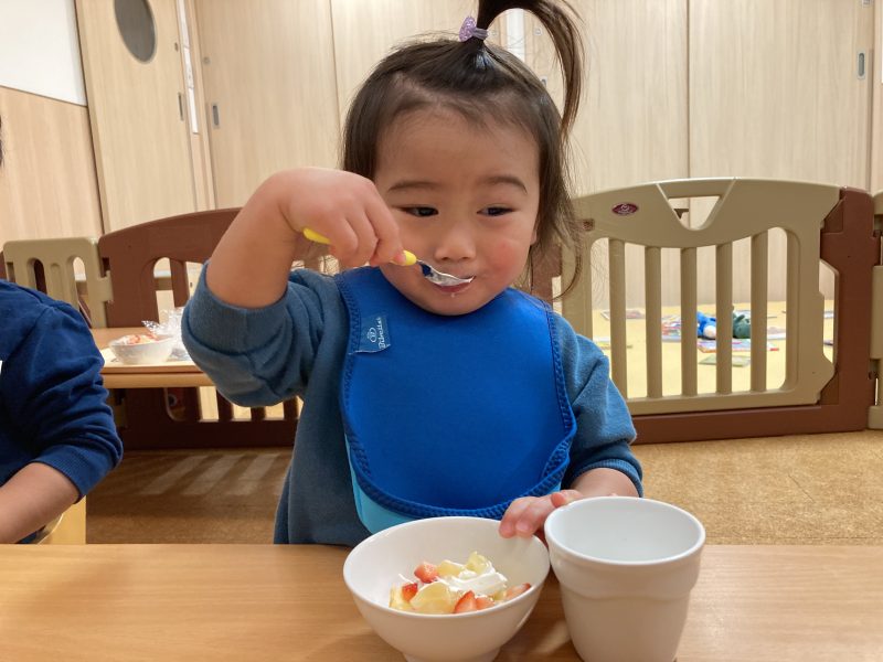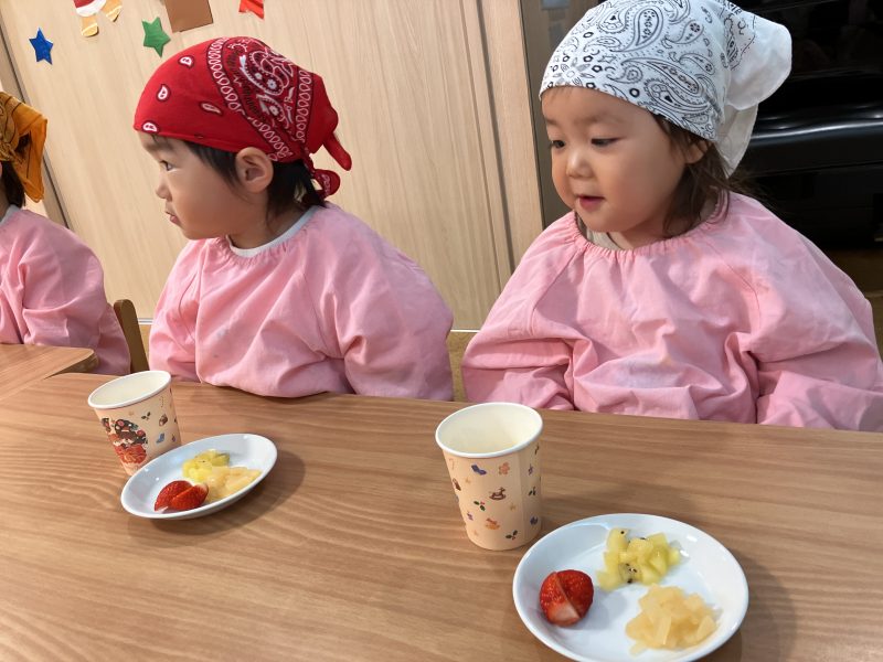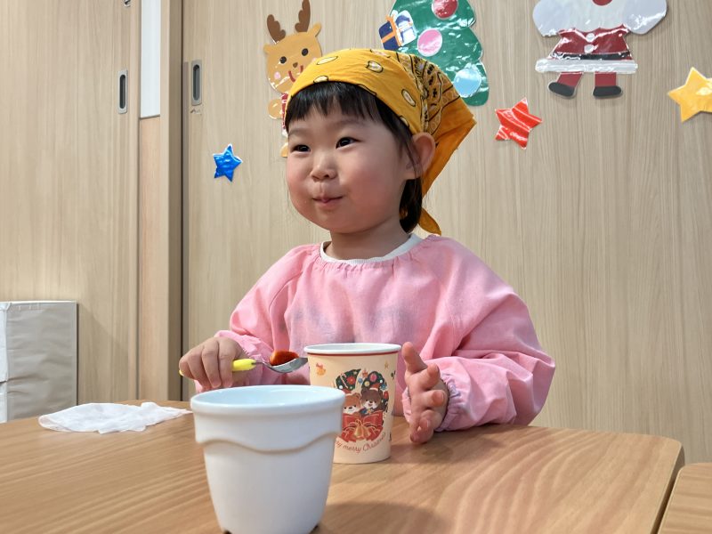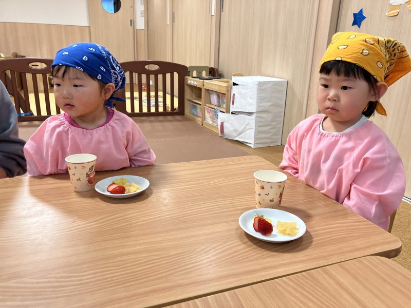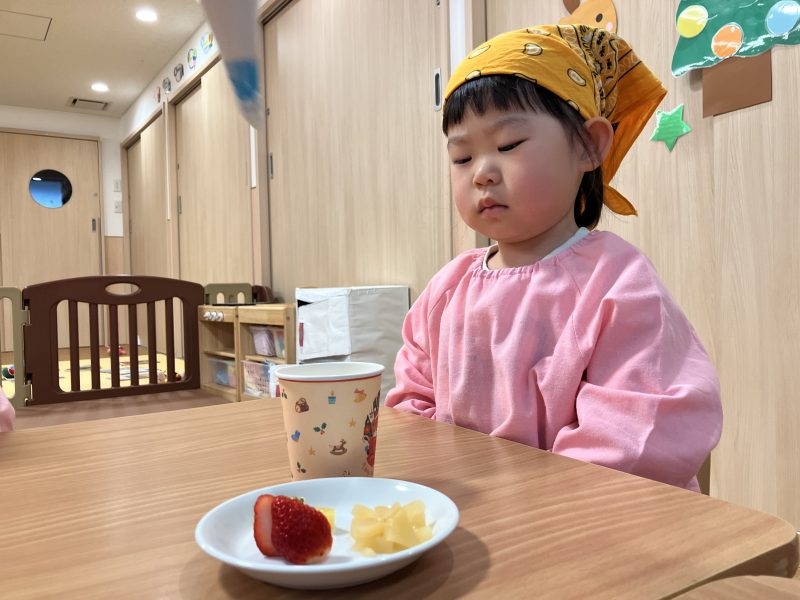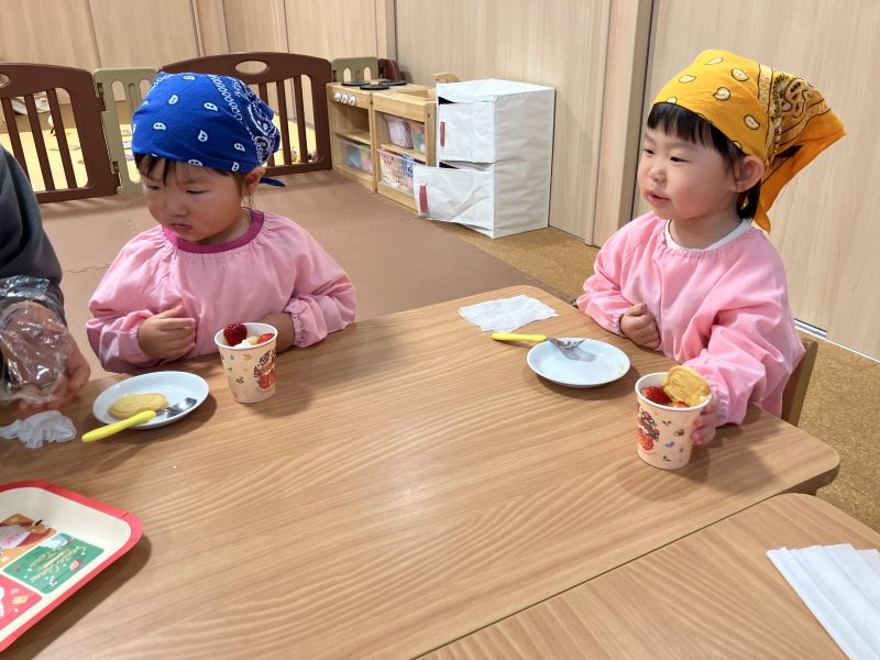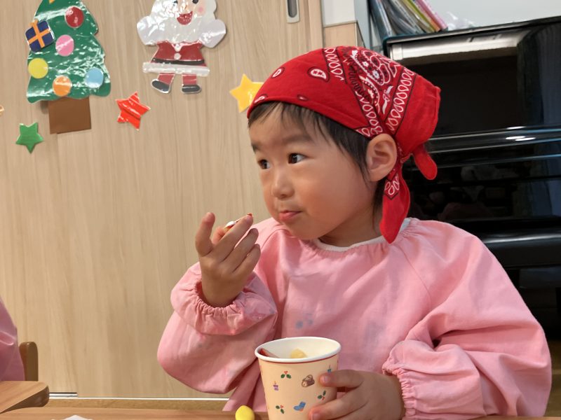 クリスマス会の日のおやつの時間に、2歳児だけで行いました♪