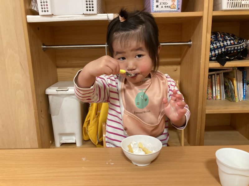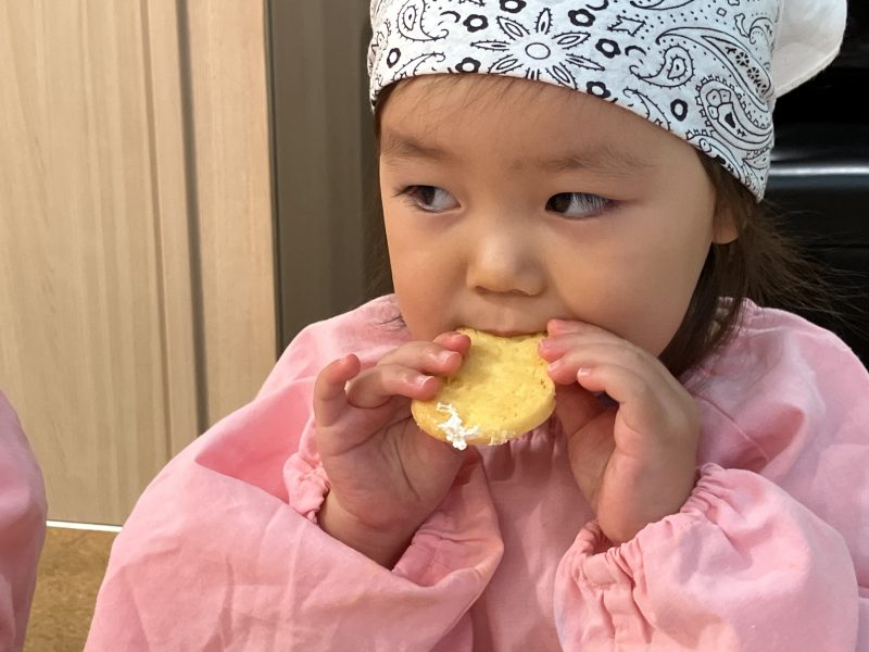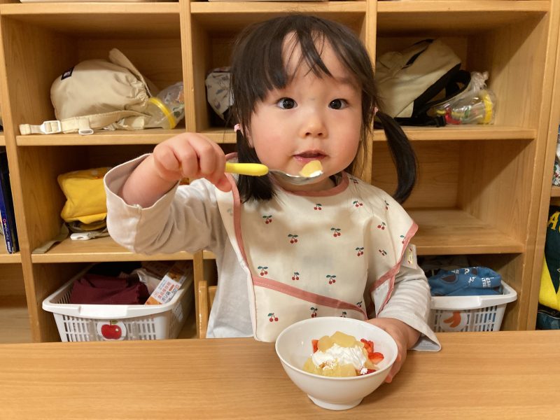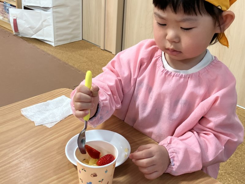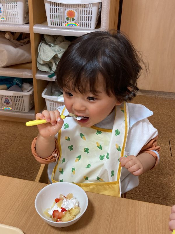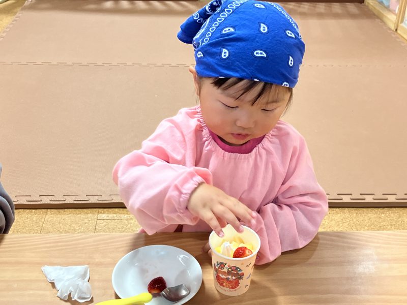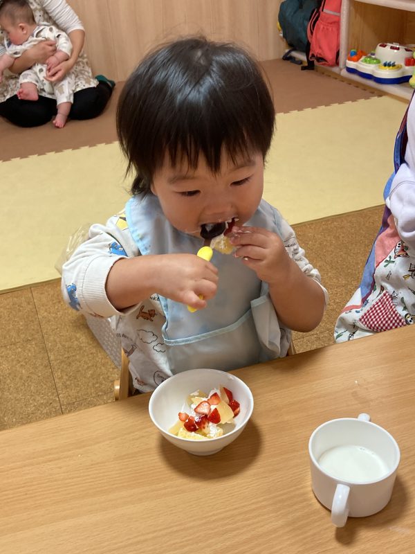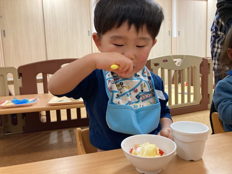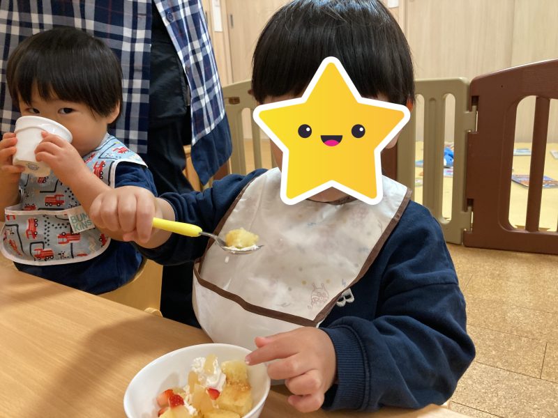 クリスマス会の日のおやつの時間に、2歳児だけで行いました♪
