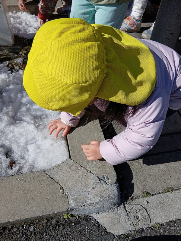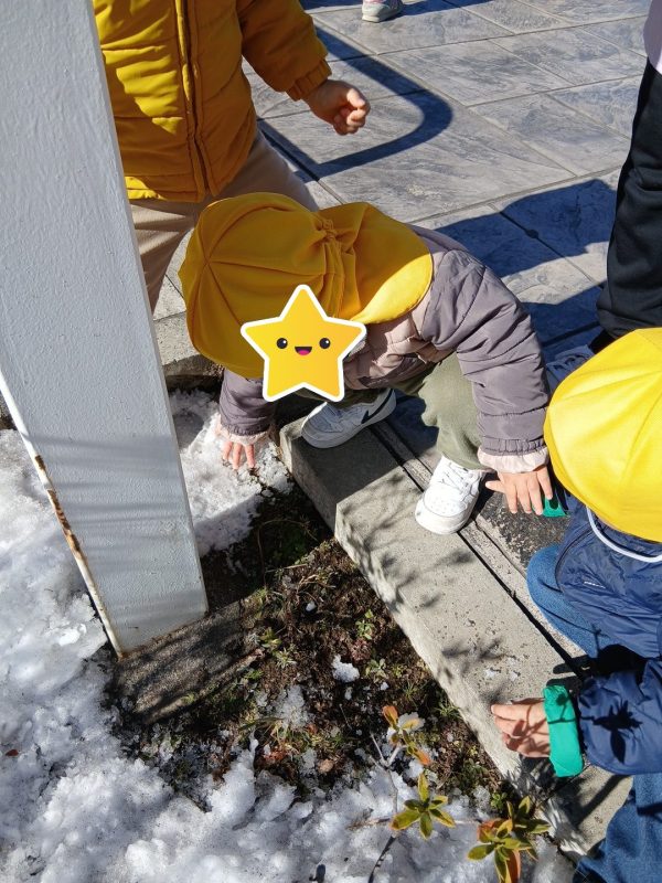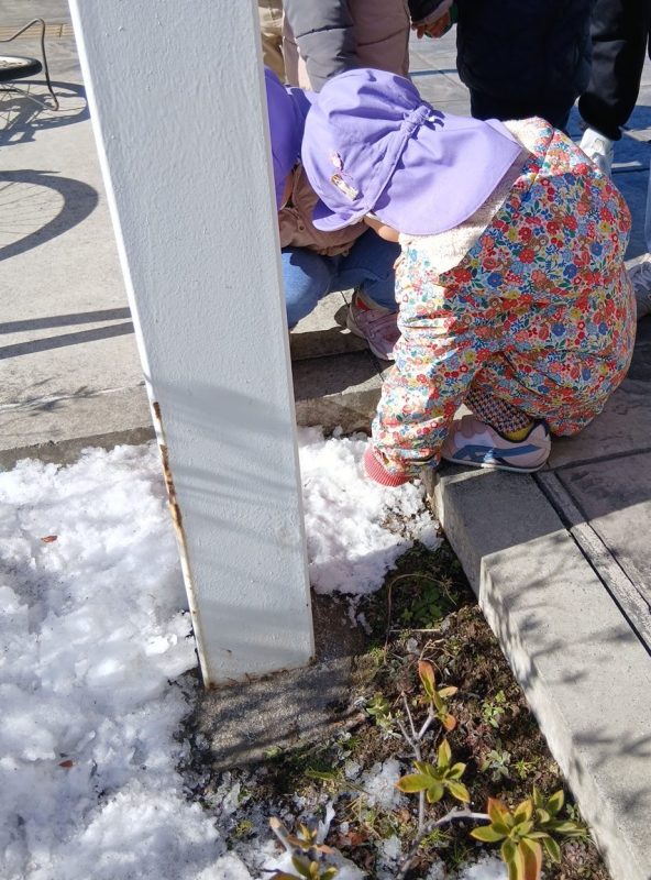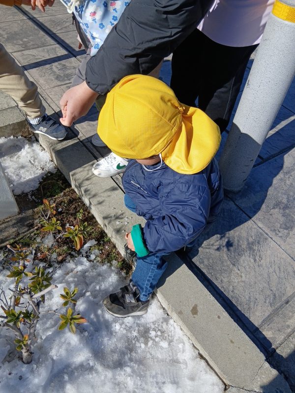 今日は、昨日の雪を探しに散歩へ出掛けた子どもたち♪