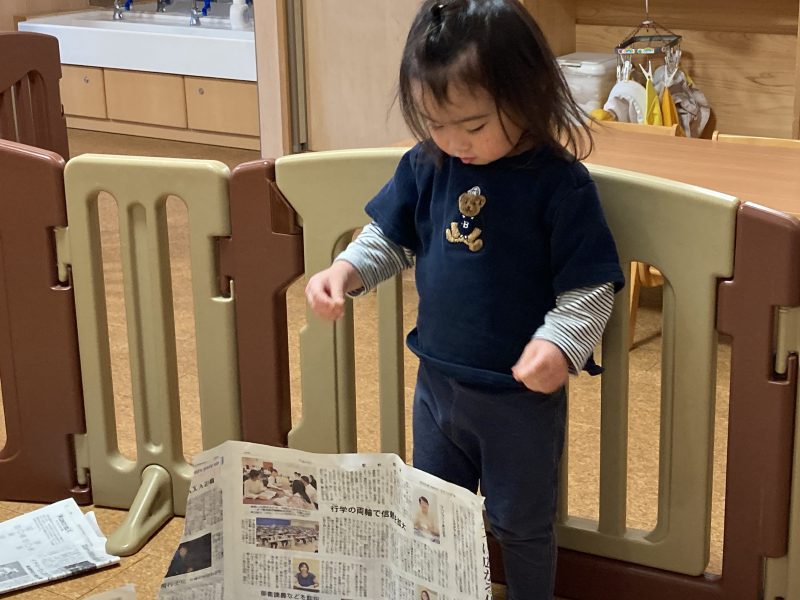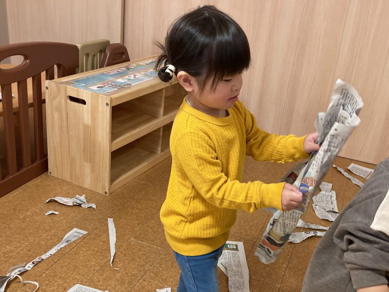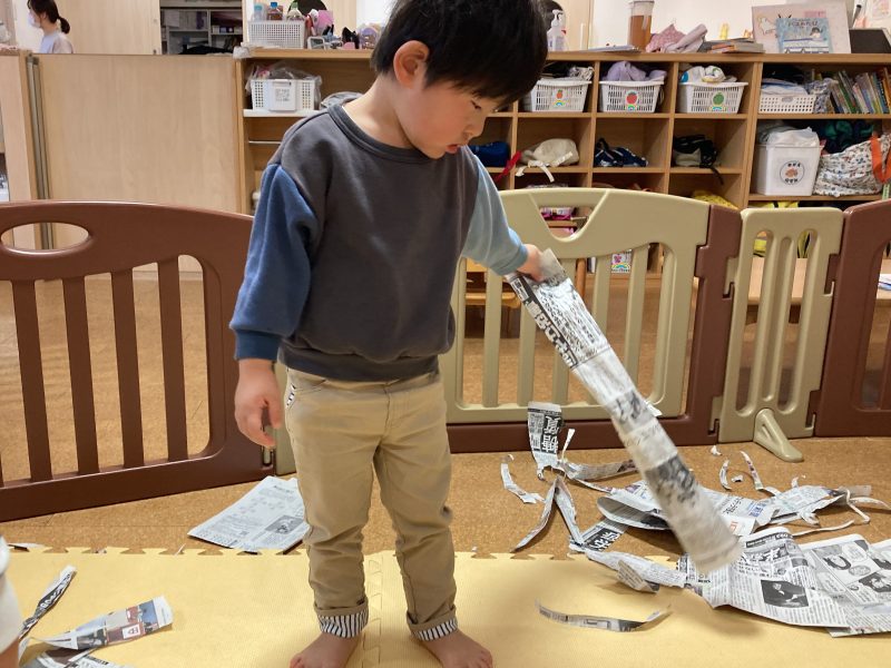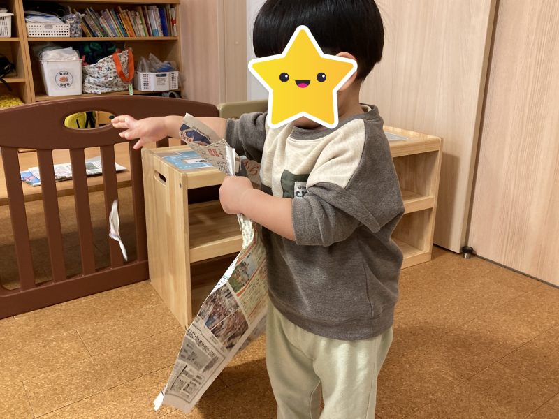 今日ののぞみ組は、新聞紙遊びをしていましたよ♪