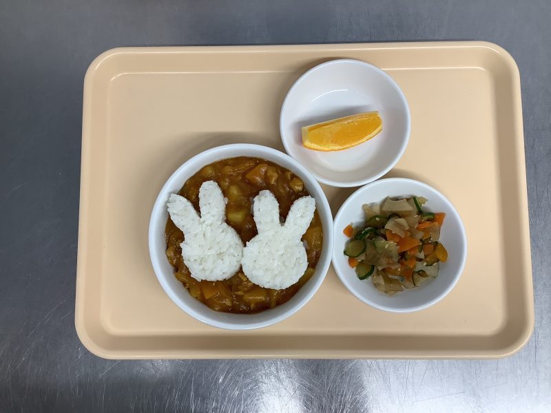 みちこ先生とるか先生が、お月様をイメージした給食を作ってくれましたよ♪