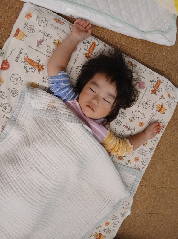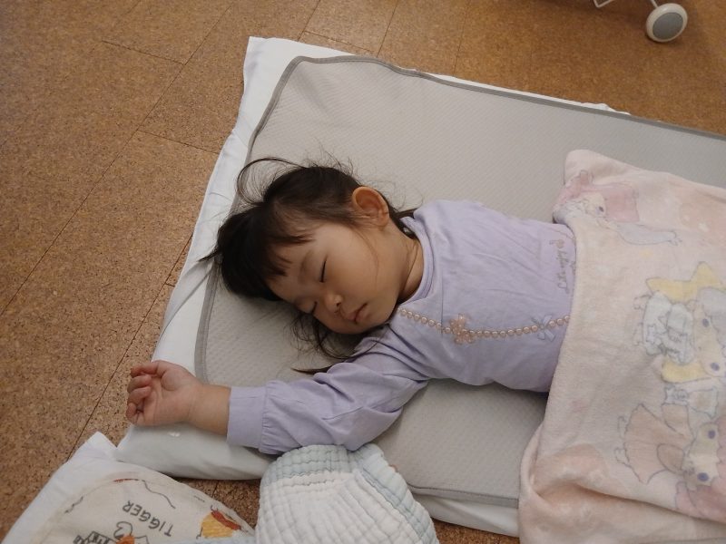 みのり組は園庭で遊んだりリズム英語に参加したりと、たくさん楽しんだので気持ちよさそうなお昼寝タイム♪