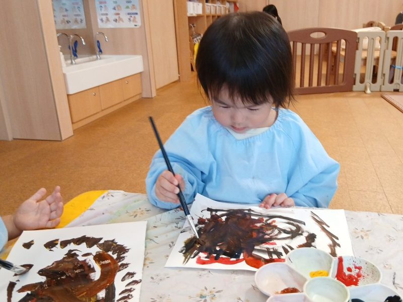 めばえ組は初めての筆!しっかり持って描けていますね☆