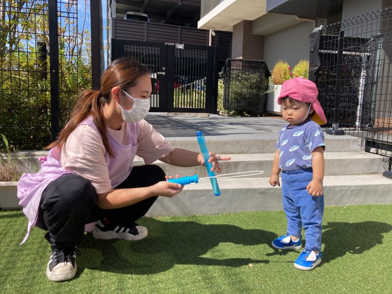 フワフワ飛んでいくしゃぼん玉を、まぶしそうに目で追いかけていました。