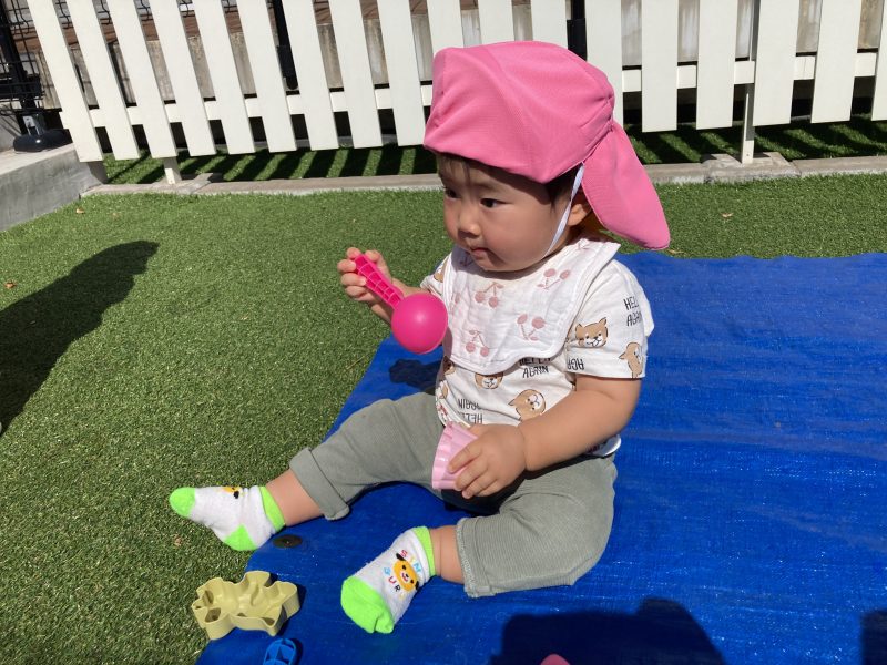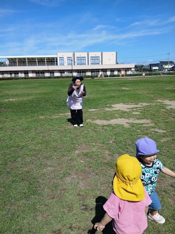 その頃めばえ組は、園庭でシャボン玉遊び♪