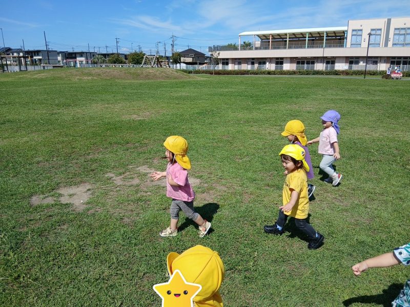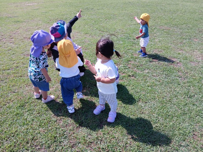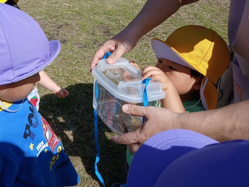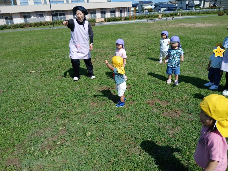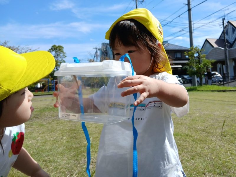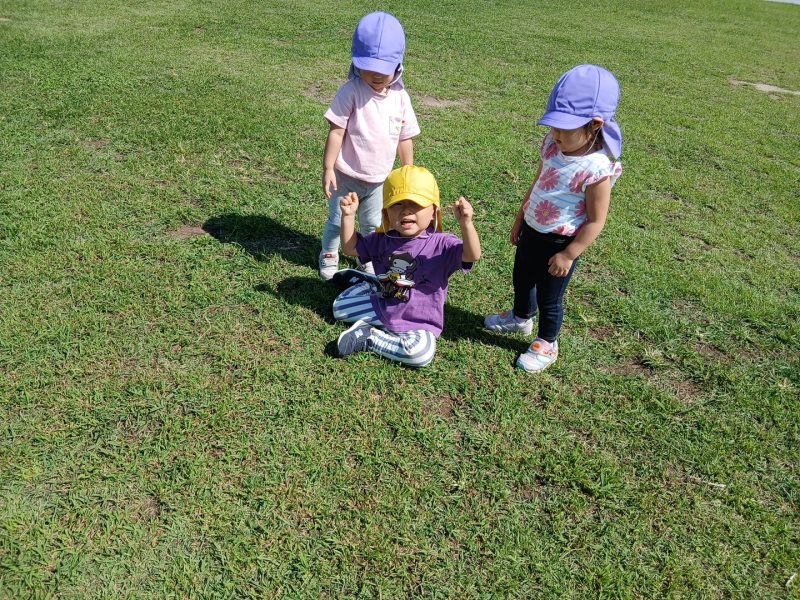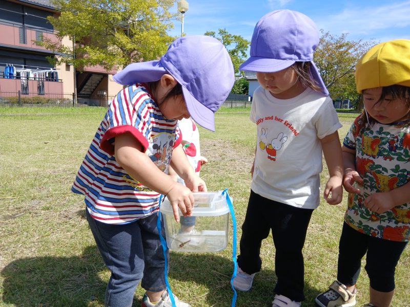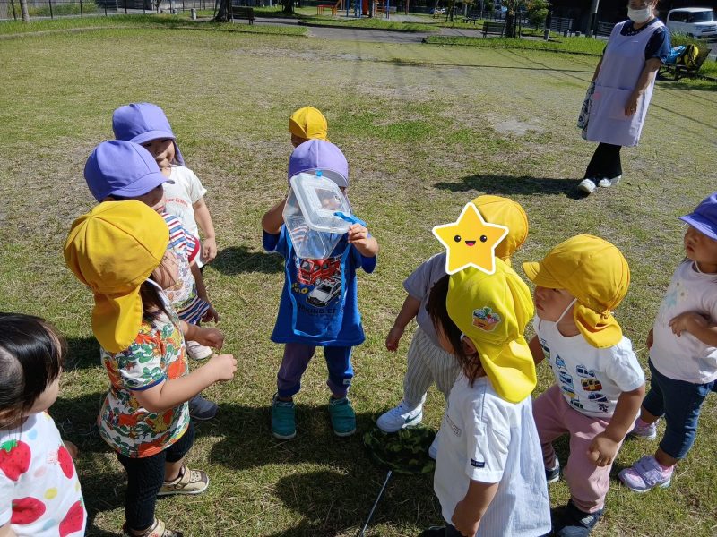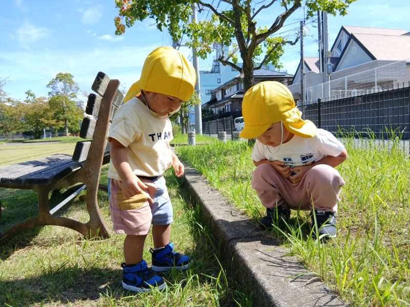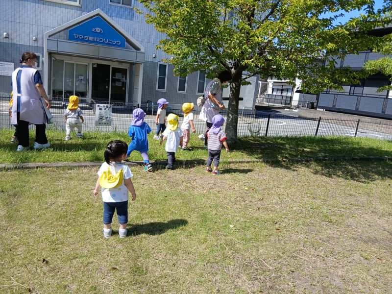 今日ののぞみ組とみのり組は、昨日捕まえられなかったトンボを探しに、奈良輪西公園へ散歩に出掛けました。